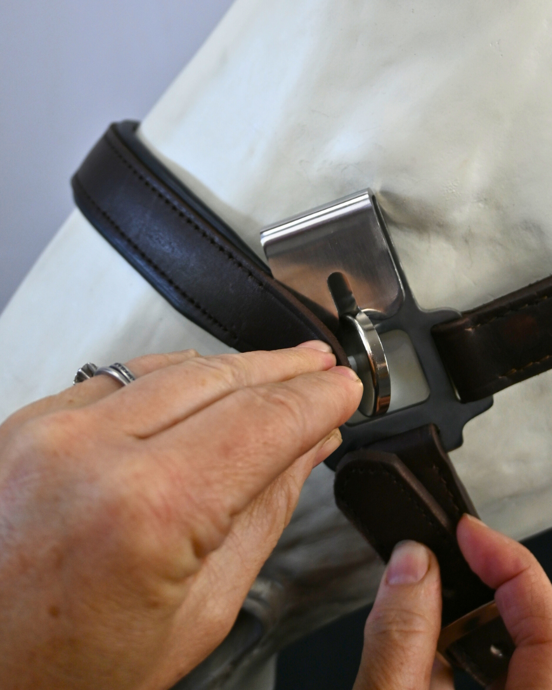 The Magna Halter buckle was created by Sara Yarger, who combined her love for horses and her dedication to supporting individuals with disabilities to design an innovative, accessible horse halter. While working in below-freezing temperatures and engaging with young children both in the barn and during her studies as a special education teacher, Sara recognized a need for halters that are more friendly to fine motor skills. Traditional snaps and buckles can be challenging for many, but MagnaHalter’s patented magnetic fasteners empower people of all abilities to halter their horses independently, regardless of physical limitations or climate conditions. Her incredible innovation not only earned her a patent but also won her a prize in The Hatch, a contest similar to Shark Tank, where her idea impressed judges with its practicality and impact. What began as a simple college project has blossomed into a groundbreaking solution and a gateway to accessible tack.