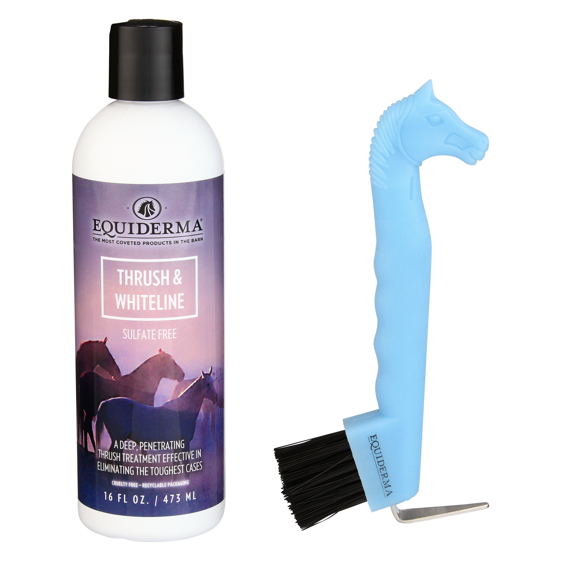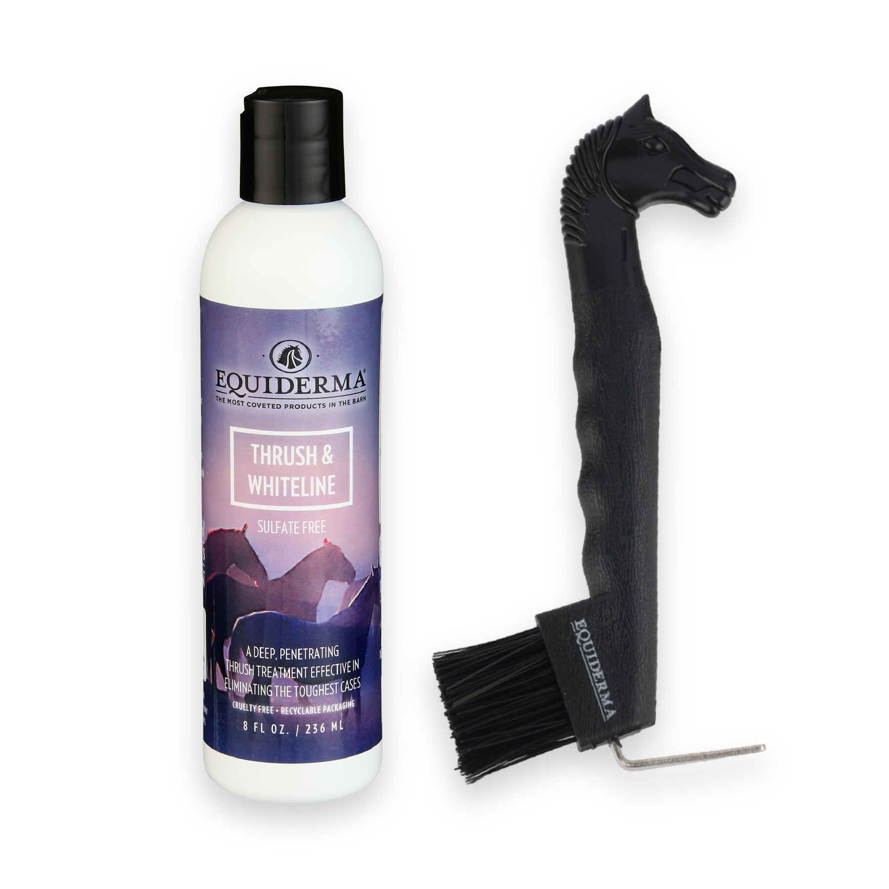 Our formula works like magic on thrush & whiteline disease. This broad-spectrum formula gets the job done fast, predictably, reliably, and painlessly. Simply apply to a clean hoof and scrub in with the brush end of a hoof pick.