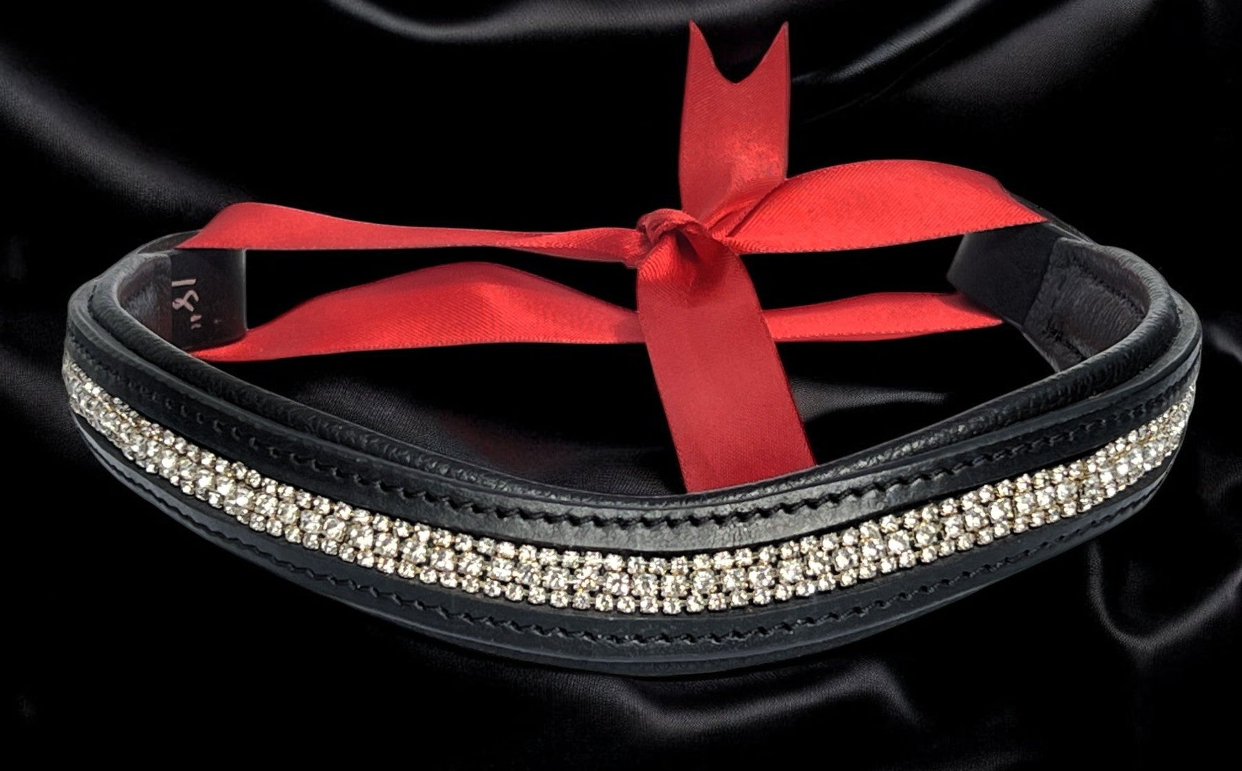 Ice Ice Baby - This 18” black padded leather browband with standard loops is packed from end to end with bling! This is a show stopper!!