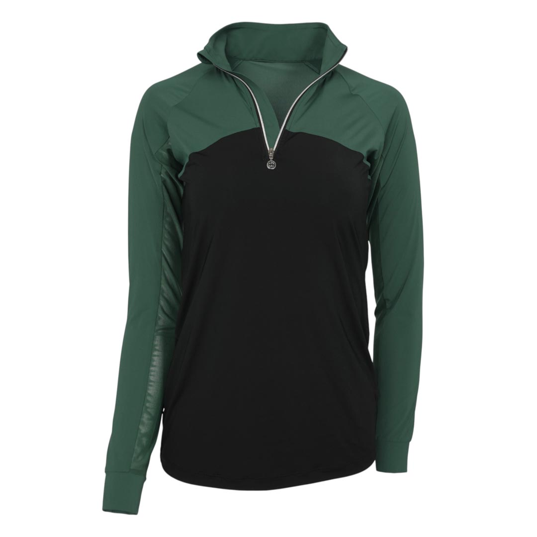 The Lady Riding Top, a Dapplebay best-seller and customer favorite, is now available in stunning dark colors that perfectly coordinate with our other equestrian collections. Crafted from ultra-cooling, silky soft ice-feel fabric, this equestrian top is ideal for warm-weather riding and comfortable layering. Breathable mesh panels under the arms provide targeted ventilation, while its tailored length ensures a smooth tuck into breeches for a polished riding look. Known for its clean lines and flattering color block design, this riding shirt effortlessly elevates your style both in and out of the arena. Named after Dapplebay founder Leah's first horse, Fine Lady, this top embodies grace and confidence, always making an impression.