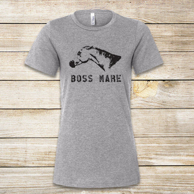 Beware the Boss Mare! Whether you are someone's boss, you own a boss mare, or are just a force to be reckoned with, this shirt is for YOU! This screen printed top captures the boss mare's expression perfectly, from her pinned ears to her pursed lips.